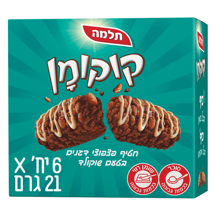 חטיף דגנים פריך בטעם שוקולד, מתוק ומוכר, מתאים כנשנוש קל בכל שעה.