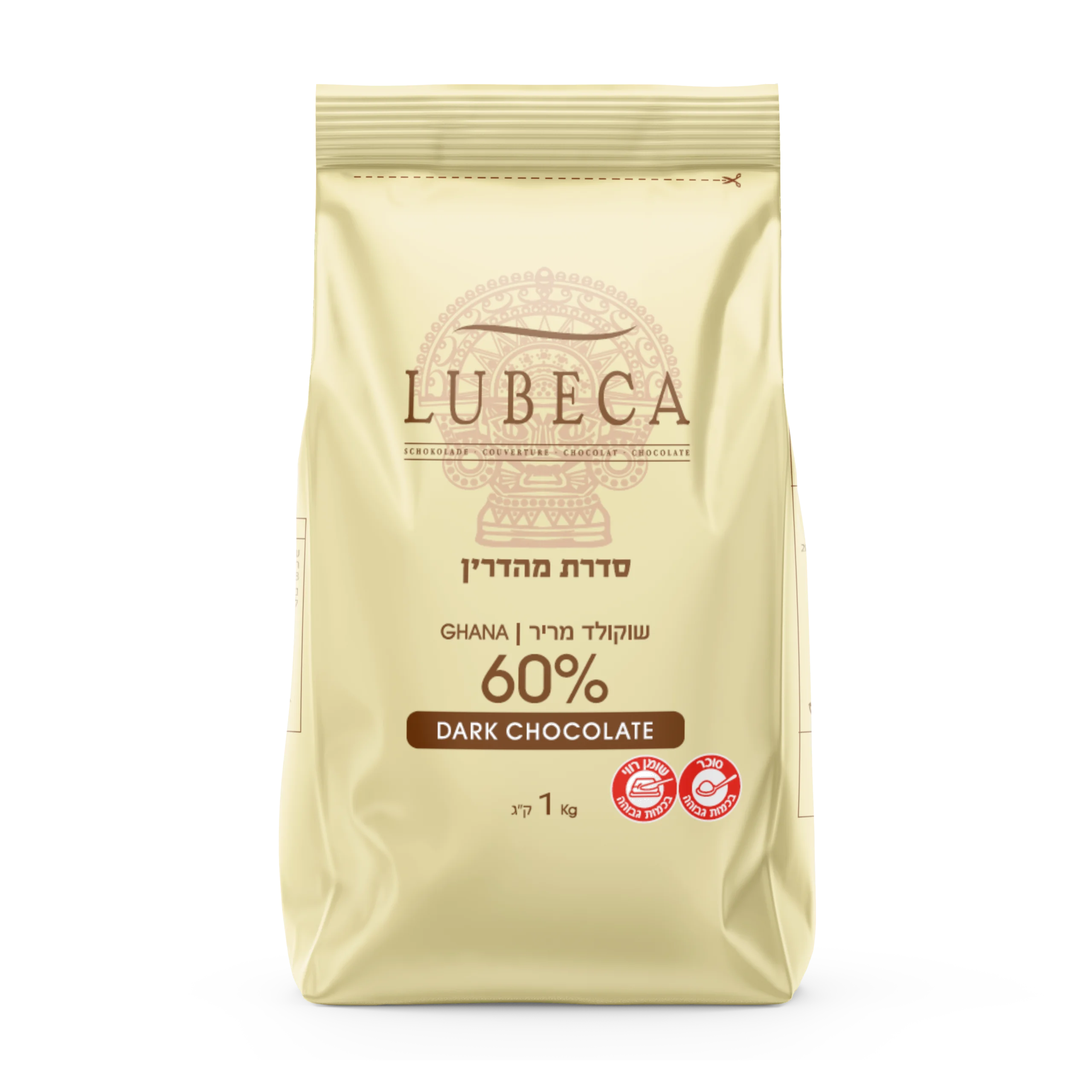 לובקה שוקולד מריר 55%, שוקולד מריר מאוזן עם מתיקות עדינה, מתאים לשימוש יומיומי באפייה וקינוחים.