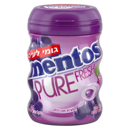 מסטיק ללא סוכר בטעם ענבים פירותי, איזון בין מתיקות לרעננות.