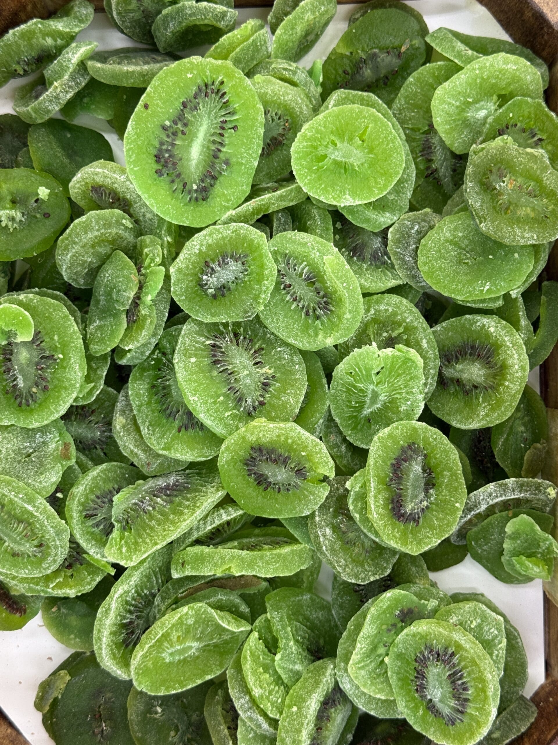 קיווי מיובש בטעם פירותי עשיר ומרקם לעיס. מתאים לנשנוש ולתוספת לגרנולה וקינוחים. מחיר ל-100 גרם: 6₪