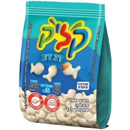 שוקולד לבן בצורת דגים עם טעם מתוק ומרקם חלק. אהוב במיוחד על ילדים.
