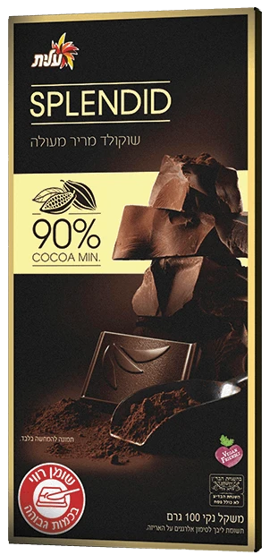 שוקולד מריר ספלנדיד 90 אחוז חטיף שוקולד עם טעם עשיר ומרקם מפנק.